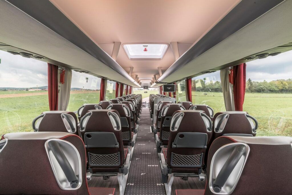 Unsere Reisebusse sind mit allem ausgestattet, was Sie für eine komfortable und bequeme Reise benötigen. Zu den Annehmlichkeiten gehören ein WC und eine Bordküche, eine Klimaanlage, leicht getönte Scheiben und komfortable Schlafsesselbestuhlung. Außerdem verfügen sie über eine Kühlbox, eine Musikanlage und ein Mikrofon. Sicherheitsgurte auf allen Sitzen und ein großer Kofferraum für das Gepäck der Passagiere sorgen für zusätzliche Sicherheit und Bequemlichkeit. Je nach Bedarf können unsere Busse auch mit WLAN ausgestattet werden oder in einer VIP-/Luxusausführung zur Verfügung gestellt werden.